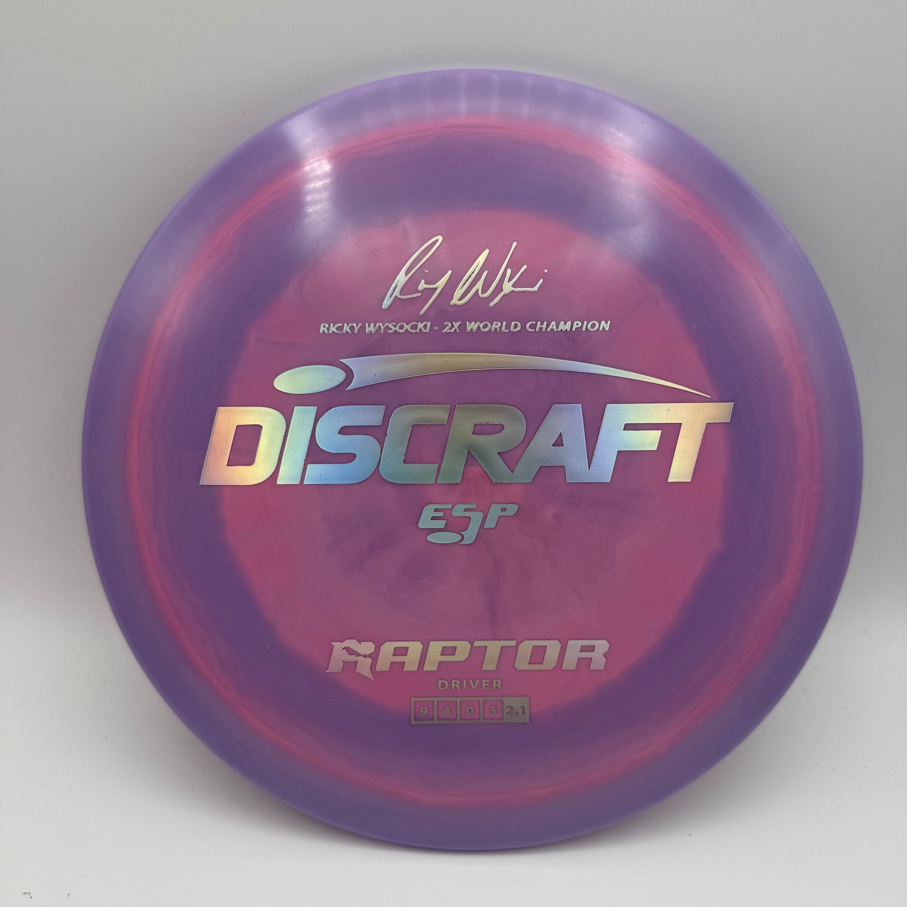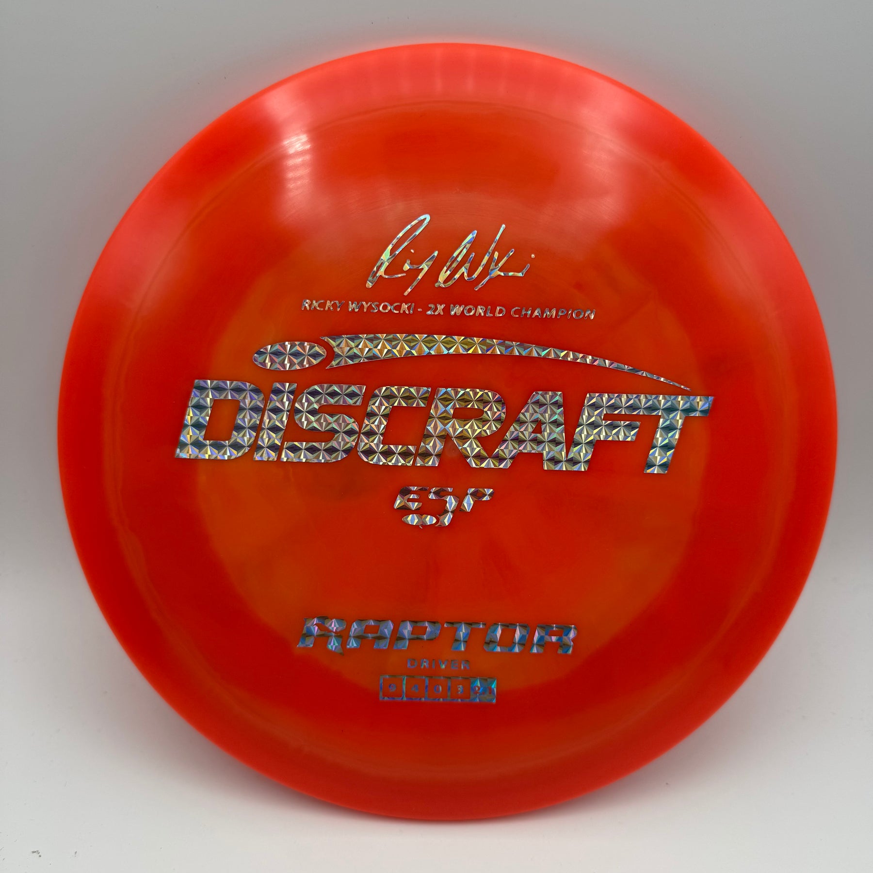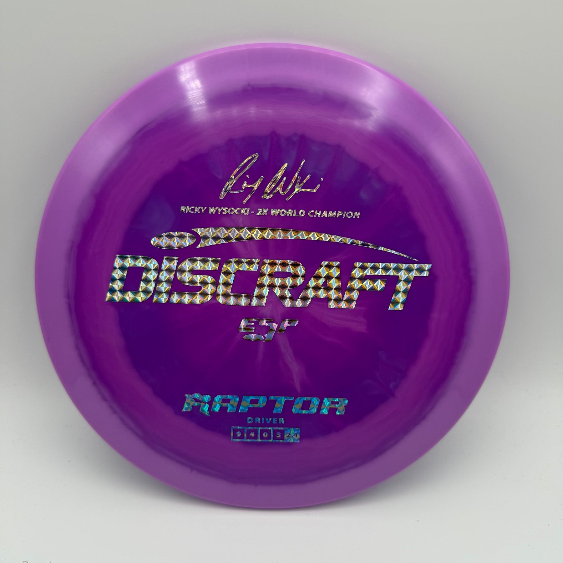 Celebrate Ricky Wysocki’s two PDGA World Championships with this ESP Raptor—a signature driver engineered for precision and reliability. Known for its flat top and overstable flight, the Raptor is a go-to choice for controlled drives, forehand lasers, and dependable fade in all conditions. This special edition features Ricky’s signature stamp, adding tour-level pedigree to one of Discraft’s most trusted molds.