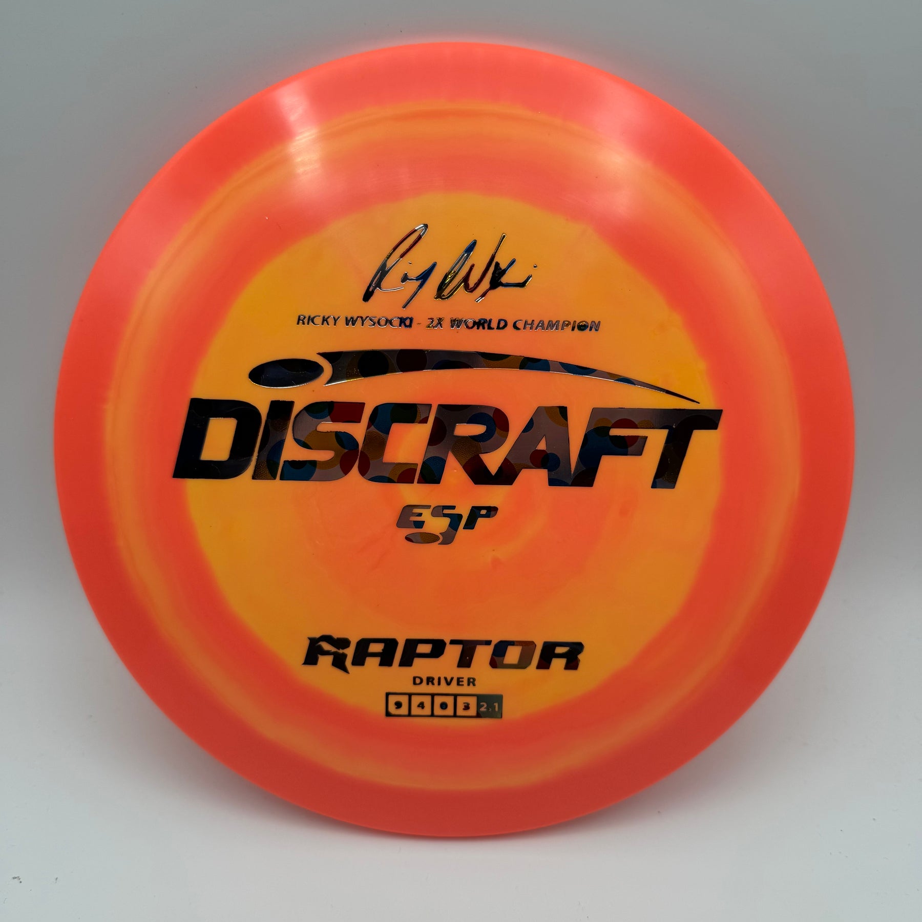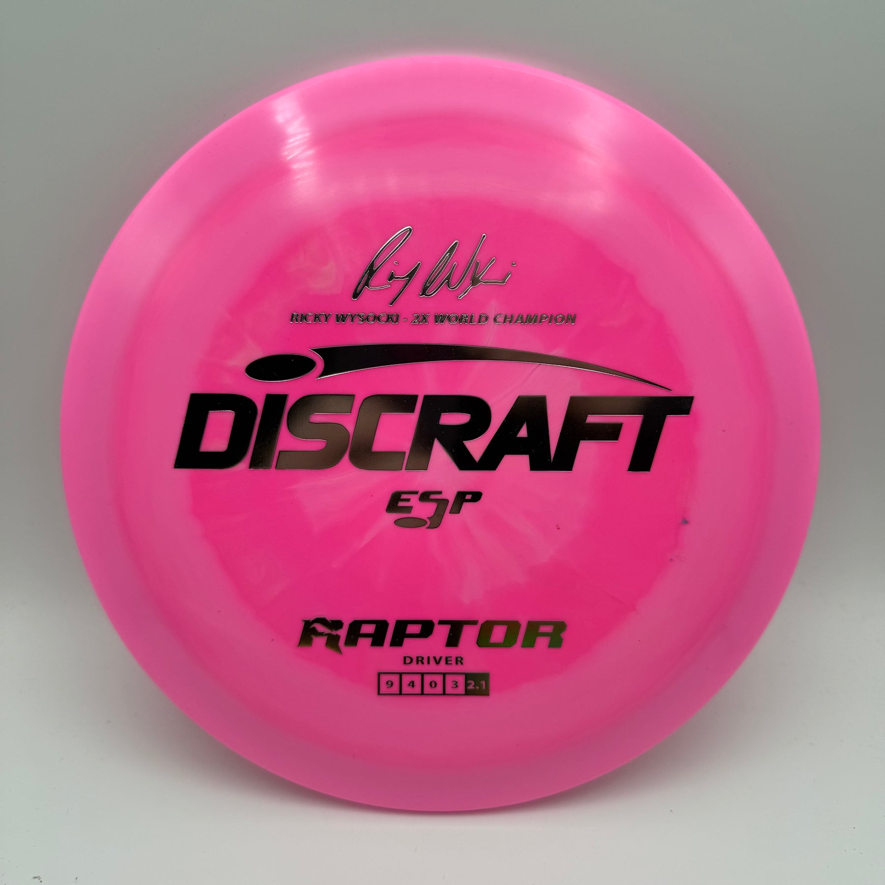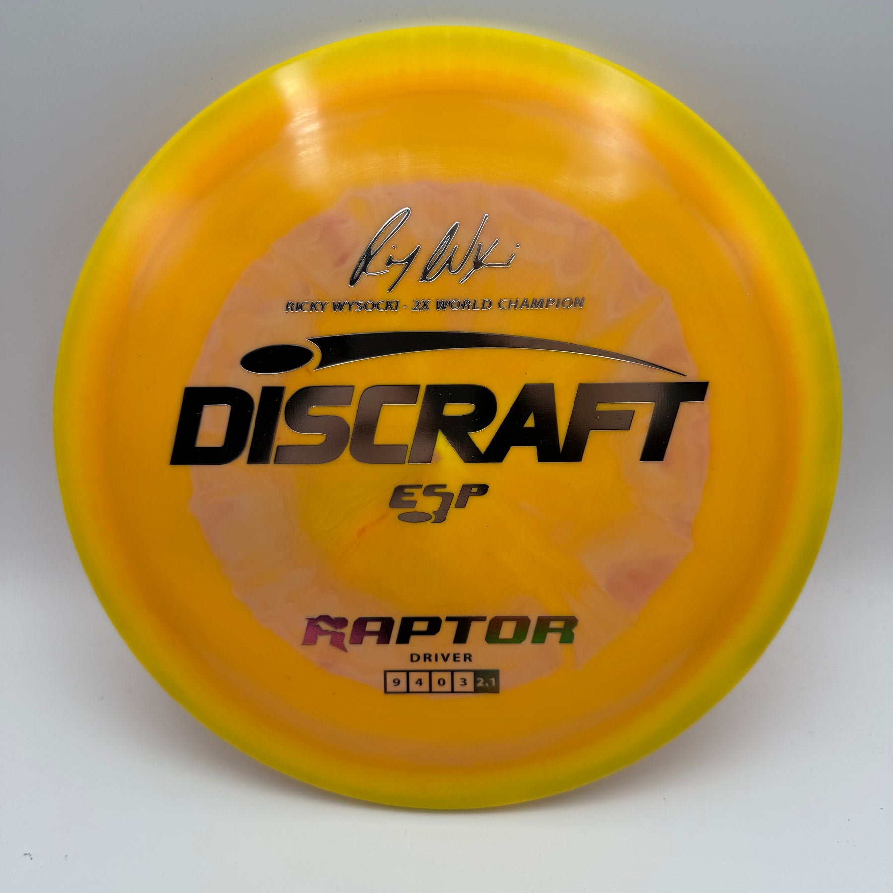 Celebrate Ricky Wysocki’s two PDGA World Championships with this ESP Raptor—a signature driver engineered for precision and reliability. Known for its flat top and overstable flight, the Raptor is a go-to choice for controlled drives, forehand lasers, and dependable fade in all conditions. This special edition features Ricky’s signature stamp, adding tour-level pedigree to one of Discraft’s most trusted molds.