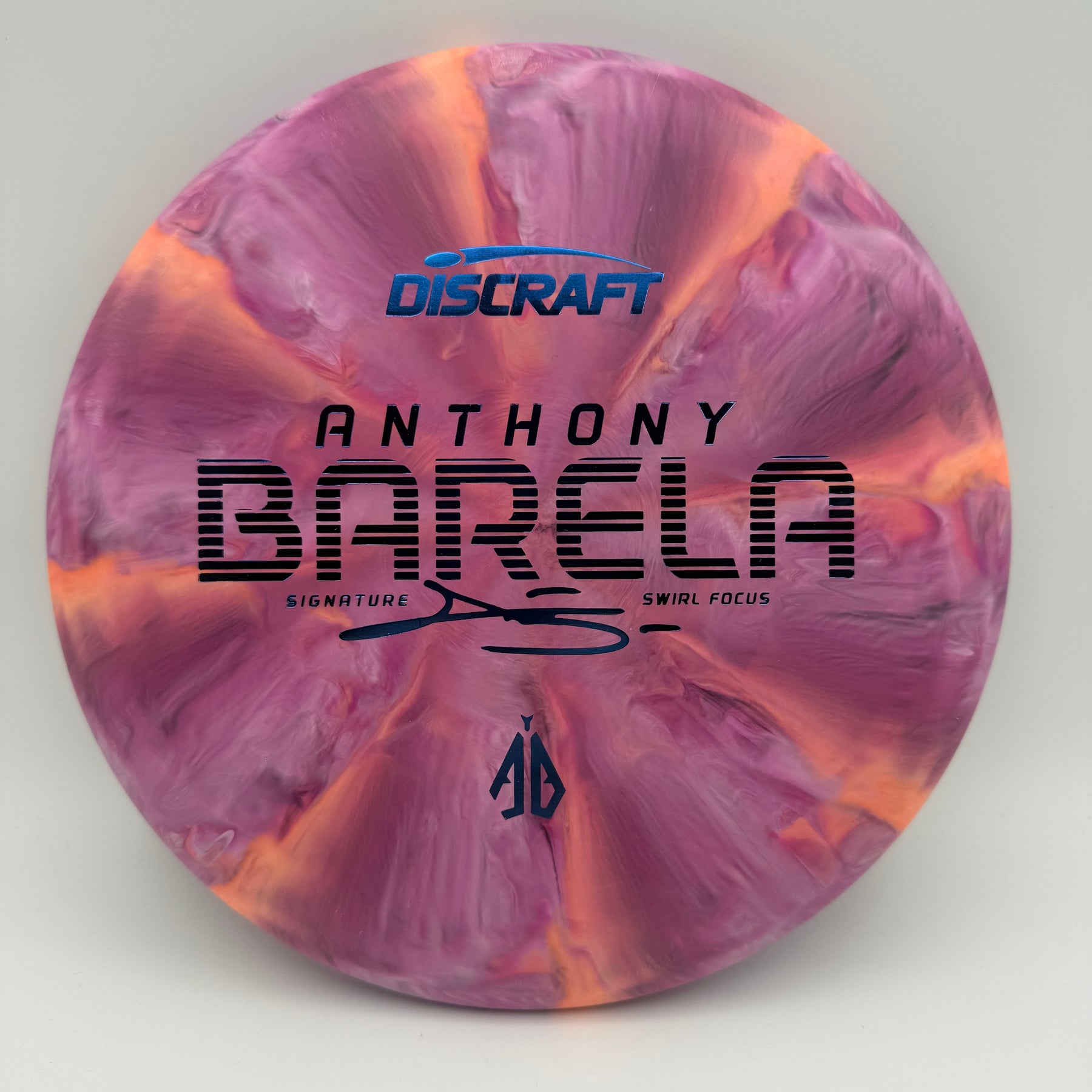 The Anthony Barela CT Swirl Focus is designed for players seeking precision and control in their putting game. This putter features a unique CT Swirl plastic blend, offering a comfortable grip and a striking, one-of-a-kind appearance. Known for its stable flight and minimal fade, the Focus is perfect for accurate putts and approach shots. With Anthony Barela's signature touch, this disc not only performs exceptionally but also stands out in anyone’s collection.